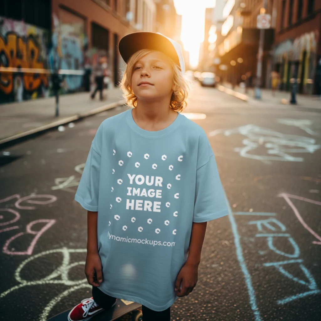 Boy Wearing Light Blue T-shirt Mockup Front View Template