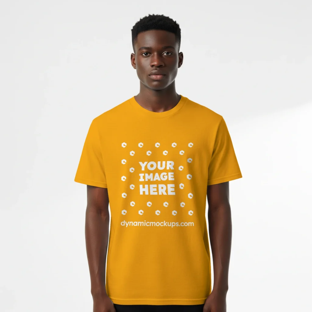Need an Young Black Boy wearing a Orange Gildan 5000 T-shirt Mockup Template to make a realistic product design? Look no further! Our T-shirt mockup templates are perfect for bringing your creative ideas to life. These mockups add a stylish touch to any design. Download, edit online, or use Photoshop to personalize and present your T-shirt designs easily. Try Boy wearing a Orange Gildan 5000 T-shirt Mockup Template #17617 now!