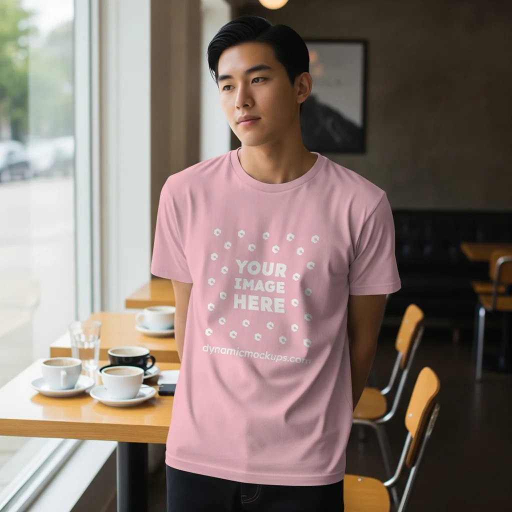 Man Wearing Pink T-shirt Mockup Front View Template