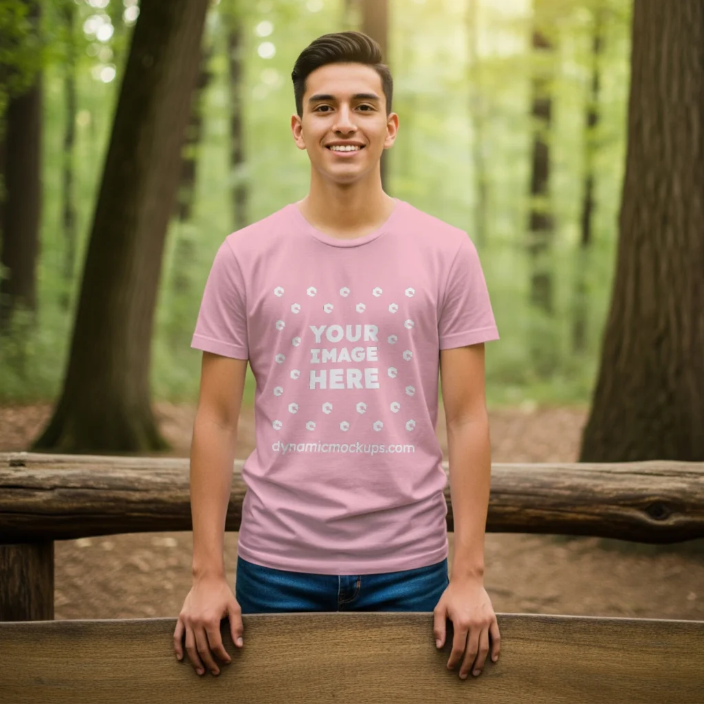 Need an Adult Hispanic Boy wearing a Pink Plain T-shirt Front View Mockup Template to make a realistic product design? Look no further! Our T-shirt mockup templates are perfect for bringing your creative ideas to life. These mockups add a stylish touch to any design. Download, edit online, or use Photoshop to personalize and present your T-shirt designs easily. Try Boy wearing a Pink Plain T-shirt Front View Mockup Template #17619 now!