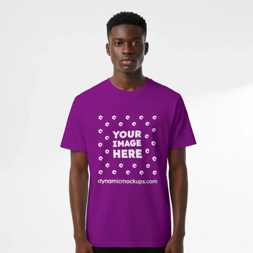 Man Wearing Purple T-shirt Mockup Front View Template