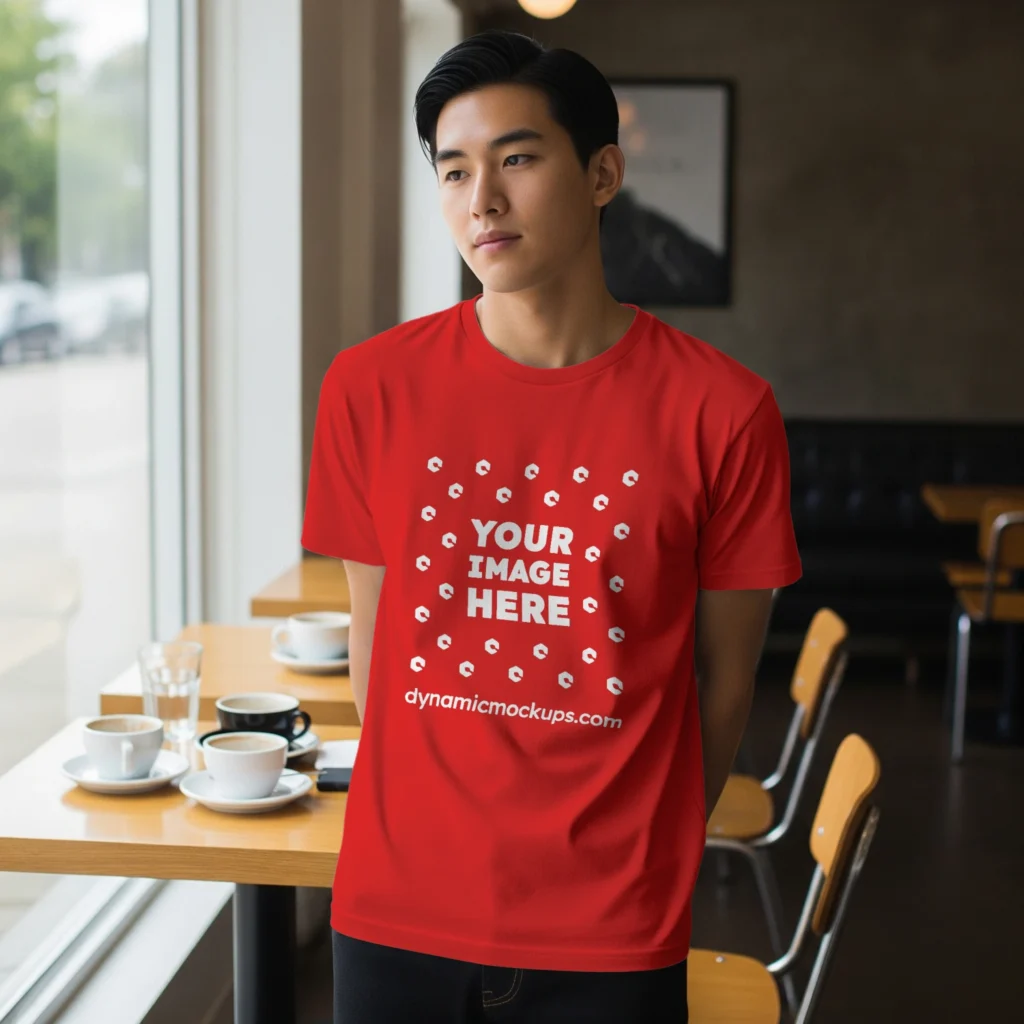 Need an Young Asian Boy wearing a Red Gildan 5000 T-shirt Mockup Template to make a realistic product design? Look no further! Our T-shirt mockup templates are perfect for bringing your creative ideas to life. These mockups add a stylish touch to any design. Download, edit online, or use Photoshop to personalize and present your T-shirt designs easily. Try Boy wearing a Red Gildan 5000 T-shirt Mockup Template #17616 now!