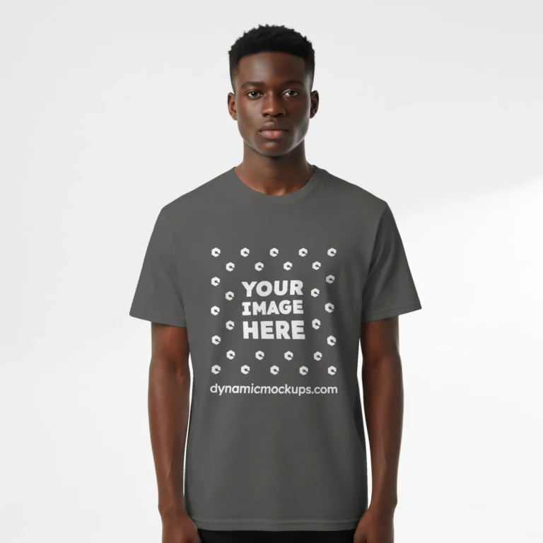 Man Wearing Dark Gray Gildan 5000 T-shirt Mockup Template