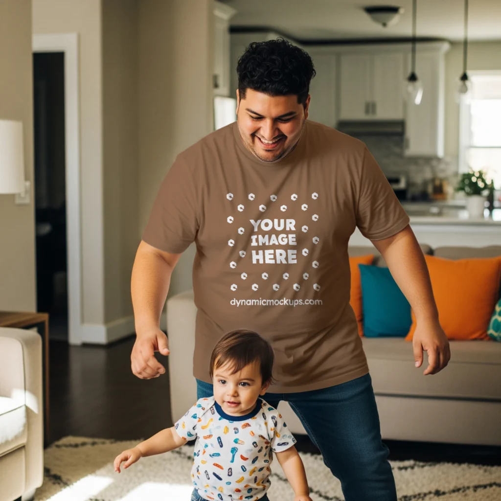 Need an Adult Hispanic Man wearing a Brown Gildan 5000 T-shirt Mockup Template to make a realistic product design? Look no further! Our T-shirt mockup templates are perfect for bringing your creative ideas to life. These mockups add a stylish touch to any design. Download, edit online, or use Photoshop to personalize and present your T-shirt designs easily. Try Man wearing a Brown Gildan 5000 T-shirt Mockup Template #17600 now!