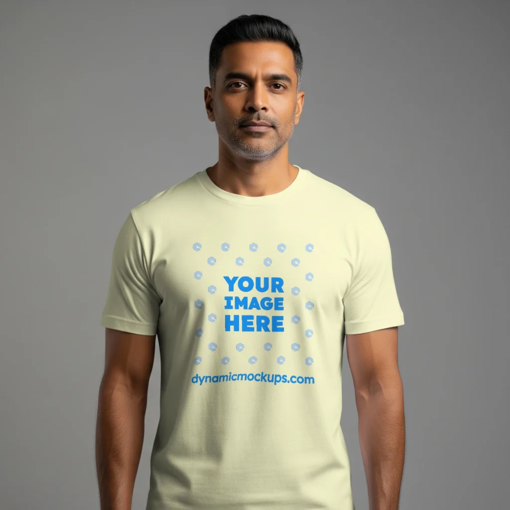 Need an Adult Asian Man wearing a Cream Gildan 5000 T-shirt Mockup Template to make a realistic product design? Look no further! Our T-shirt mockup templates are perfect for bringing your creative ideas to life. These mockups add a stylish touch to any design. Download, edit online, or use Photoshop to personalize and present your T-shirt designs easily. Try Man wearing a Cream Gildan 5000 T-shirt Mockup Template #17610 now!