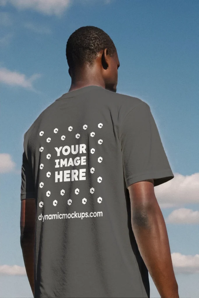 Need an Adult Black Man wearing a Dark Gray Gildan 5000 T-shirt Mockup Template to make a realistic product design? Look no further! Our T-shirt mockup templates are perfect for bringing your creative ideas to life. These mockups add a stylish touch to any design. Download, edit online, or use Photoshop to personalize and present your T-shirt designs easily. Try Man wearing a Dark Gray Gildan 5000 T-shirt Mockup Template #17603 now!