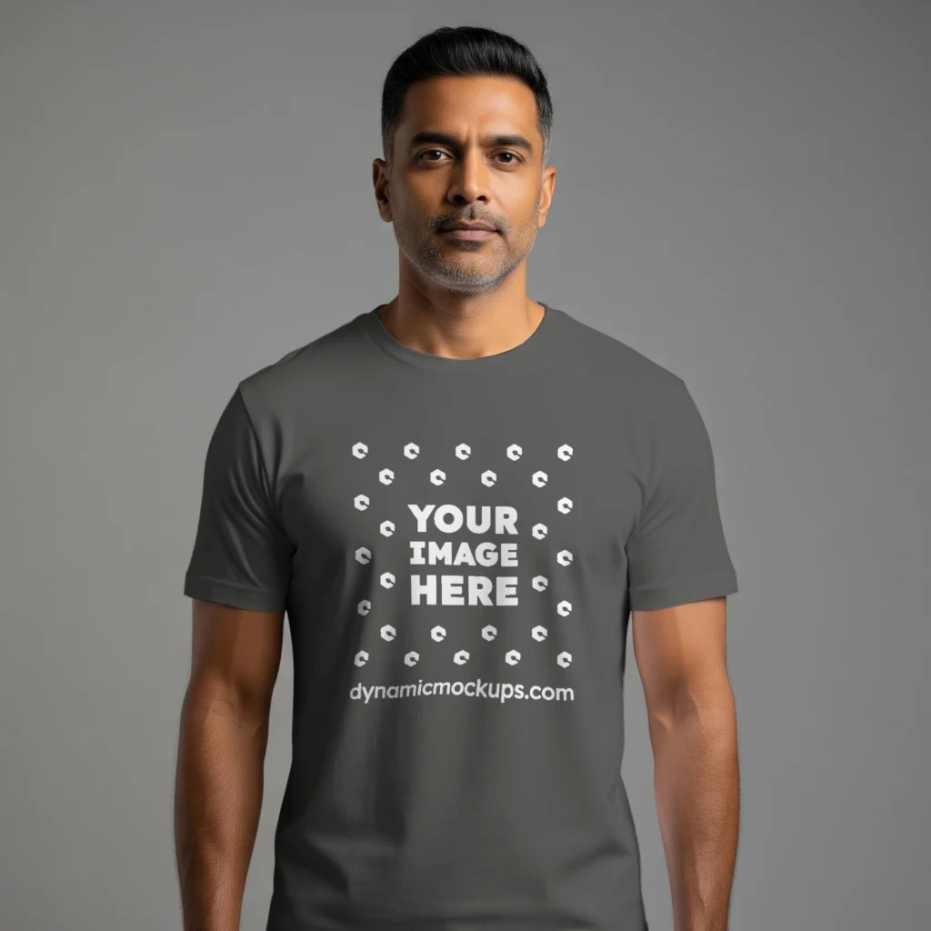 Man Wearing Dark Gray T-shirt Mockup Front View Template