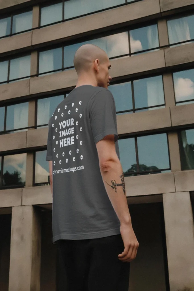 Man Wearing Dark Gray T-shirt Mockup Back View Template