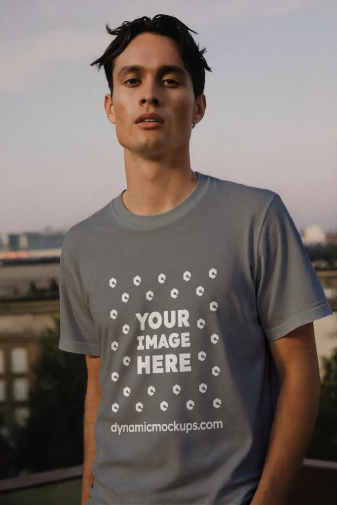 Man Wearing Gray T-shirt Mockup Front View Template