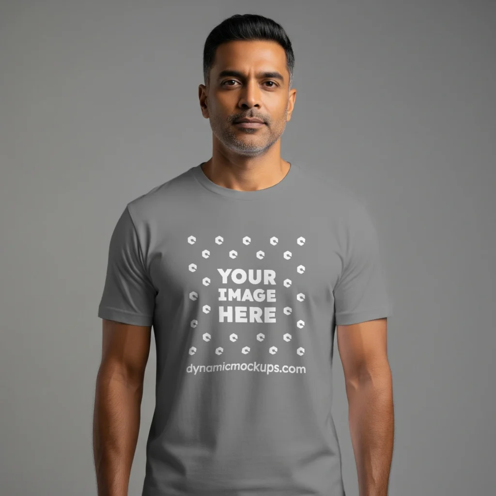 Man Wearing Gray T-shirt Mockup Front View Template