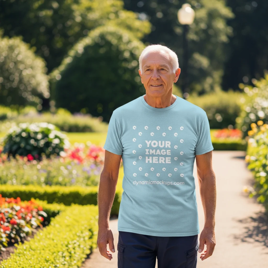 Need an Old White Man wearing a Light Blue Gildan 5000 T-shirt Mockup Template to make a realistic product design? Look no further! Our T-shirt mockup templates are perfect for bringing your creative ideas to life. These mockups add a stylish touch to any design. Download, edit online, or use Photoshop to personalize and present your T-shirt designs easily. Try Man wearing a Light Blue Gildan 5000 T-shirt Mockup Template #17621 now!