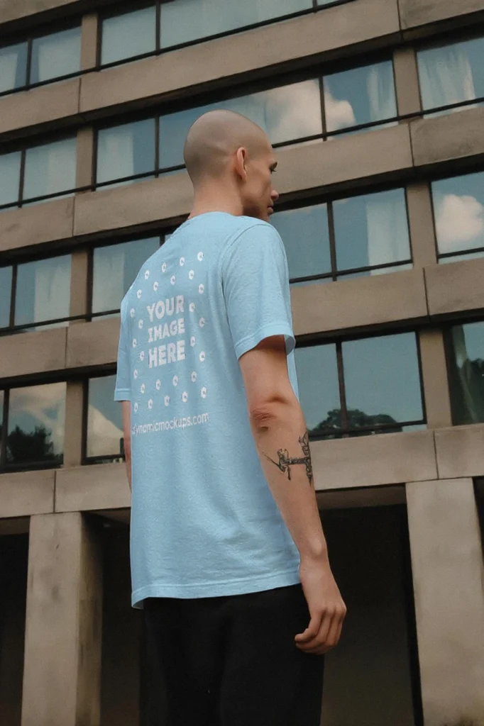 Man Wearing Light Blue T-shirt Mockup Front View Template