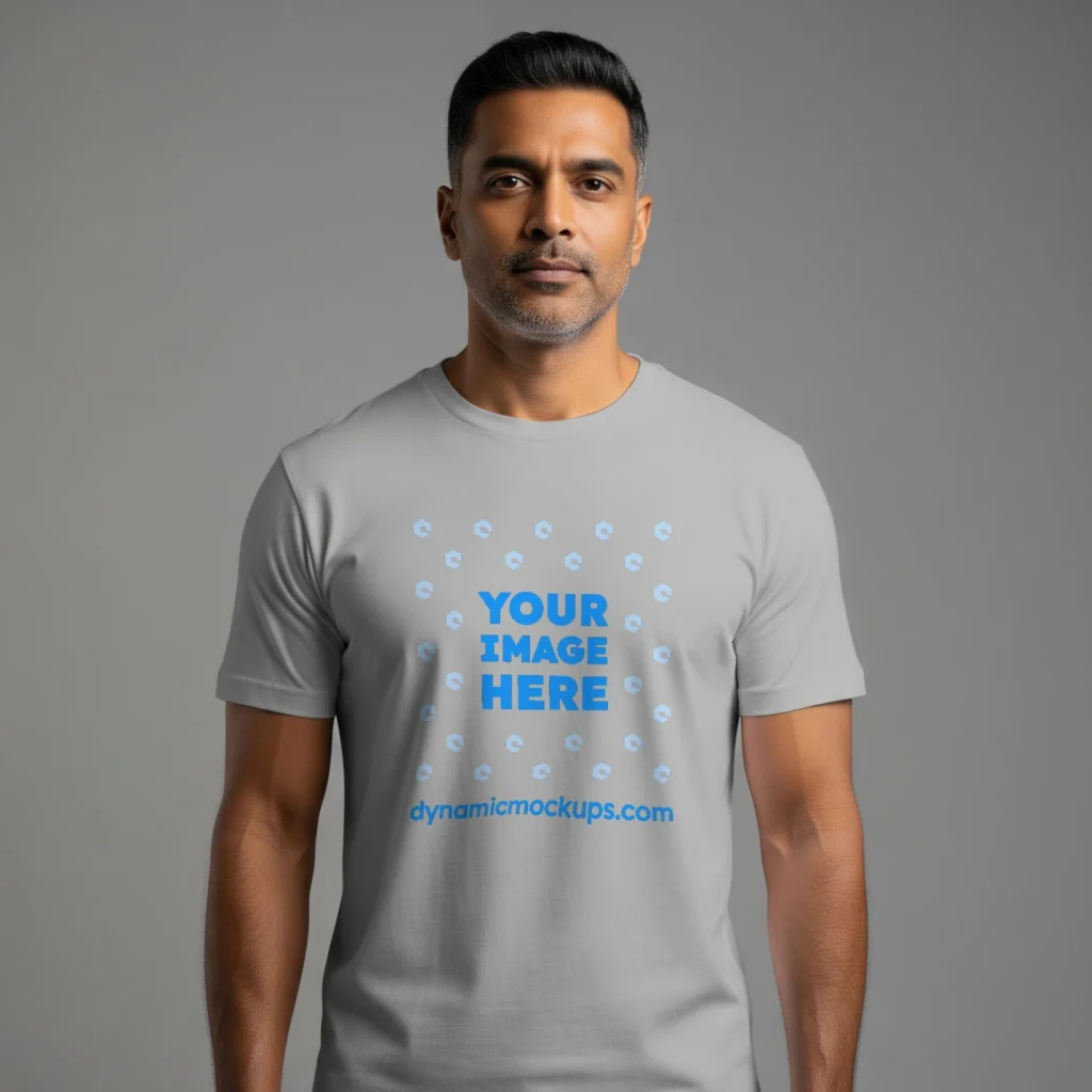 Man Wearing Light Gray T-shirt Mockup Front View Template