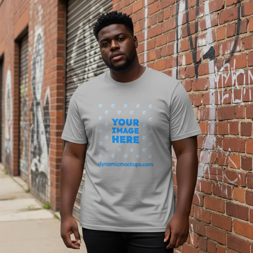 Need an Adult Black Man wearing a Light Gray Gildan 5000 T-shirt Mockup Template to make a realistic product design? Look no further! Our T-shirt mockup templates are perfect for bringing your creative ideas to life. These mockups add a stylish touch to any design. Download, edit online, or use Photoshop to personalize and present your T-shirt designs easily. Try Man wearing a Light Gray Gildan 5000 T-shirt Mockup Template #17614 now!