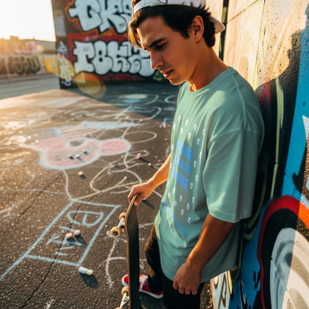 Man Wearing Mint T-shirt Mockup Front View Template