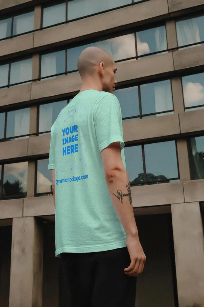 Need an Adult White Man wearing a Mint Bella Canvas 3001 T-shirt Mockup Template to make a realistic product design? Look no further! Our T-shirt mockup templates are perfect for bringing your creative ideas to life. These mockups add a stylish touch to any design. Download, edit online, or use Photoshop to personalize and present your T-shirt designs easily. Try Man wearing a Mint Bella Canvas 3001 T-shirt Mockup Template #19257 now!