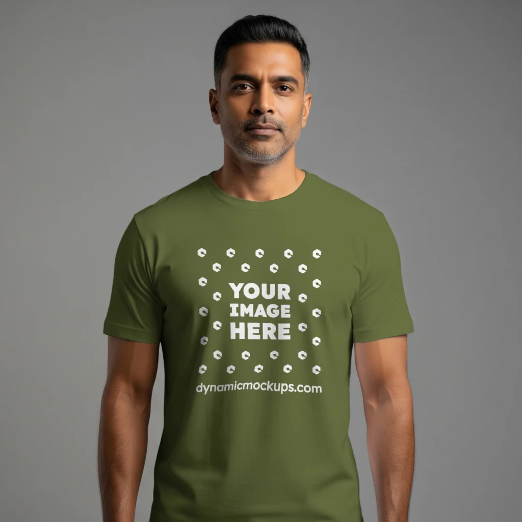 Man Wearing Olive Green T-shirt Mockup Front View Template