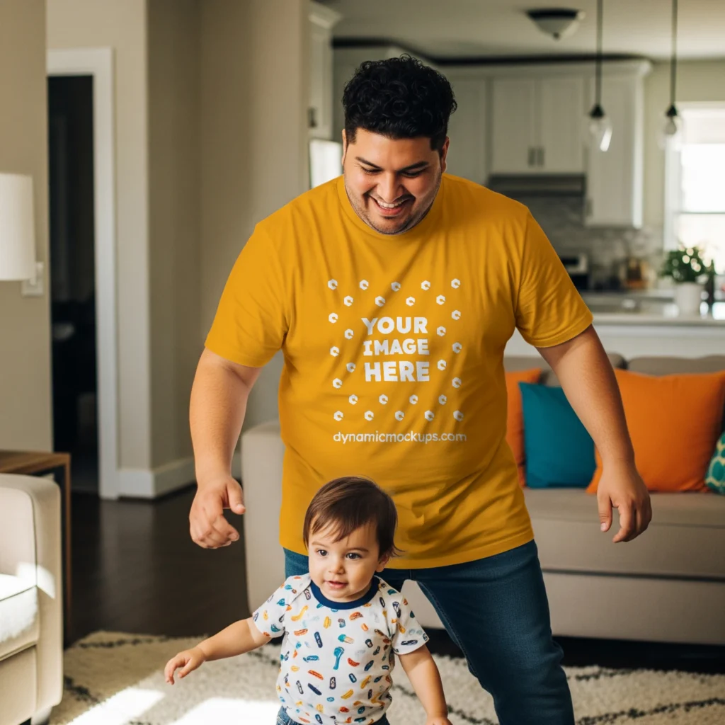 Need an Adult Hispanic Man wearing a Orange Gildan 5000 T-shirt Mockup Template to make a realistic product design? Look no further! Our T-shirt mockup templates are perfect for bringing your creative ideas to life. These mockups add a stylish touch to any design. Download, edit online, or use Photoshop to personalize and present your T-shirt designs easily. Try Man wearing a Orange Gildan 5000 T-shirt Mockup Template #17600 now!