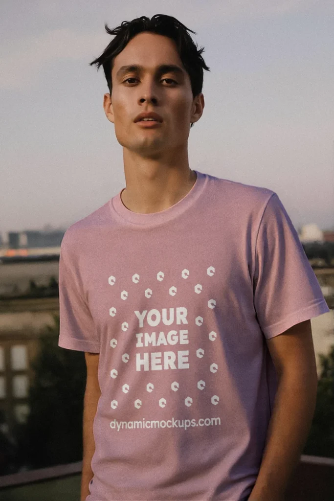 Need an Adult White Man wearing a Pink Gildan 5000 T-shirt Mockup Template to make a realistic product design? Look no further! Our T-shirt mockup templates are perfect for bringing your creative ideas to life. These mockups add a stylish touch to any design. Download, edit online, or use Photoshop to personalize and present your T-shirt designs easily. Try Man wearing a Pink Gildan 5000 T-shirt Mockup Template #17609 now!