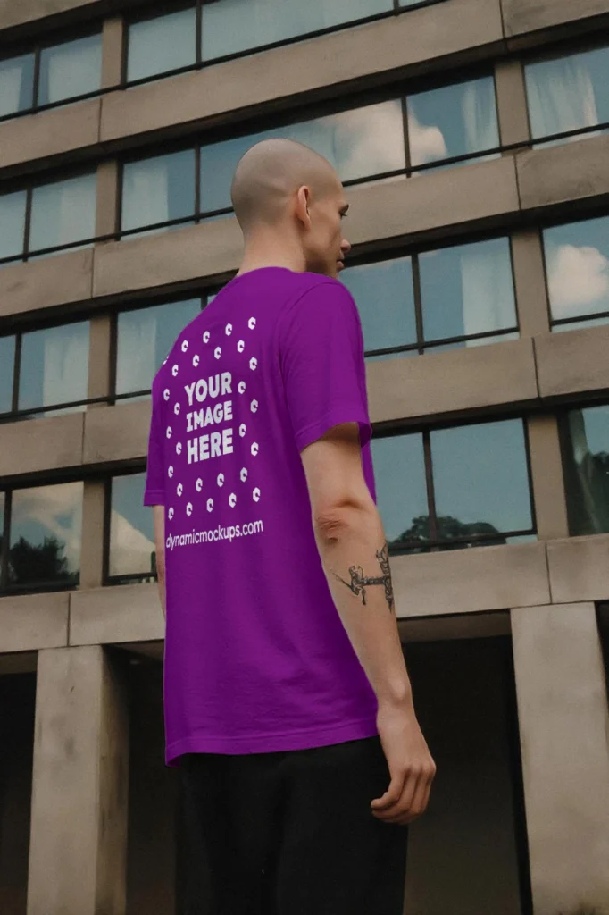 Man Wearing Purple Bella Canvas 3001 T-shirt Mockup Template
