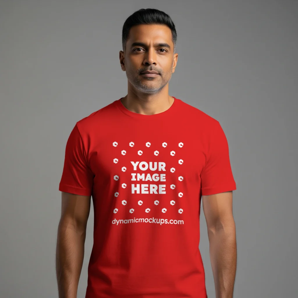 Man Wearing Red T-shirt Mockup Front View Template