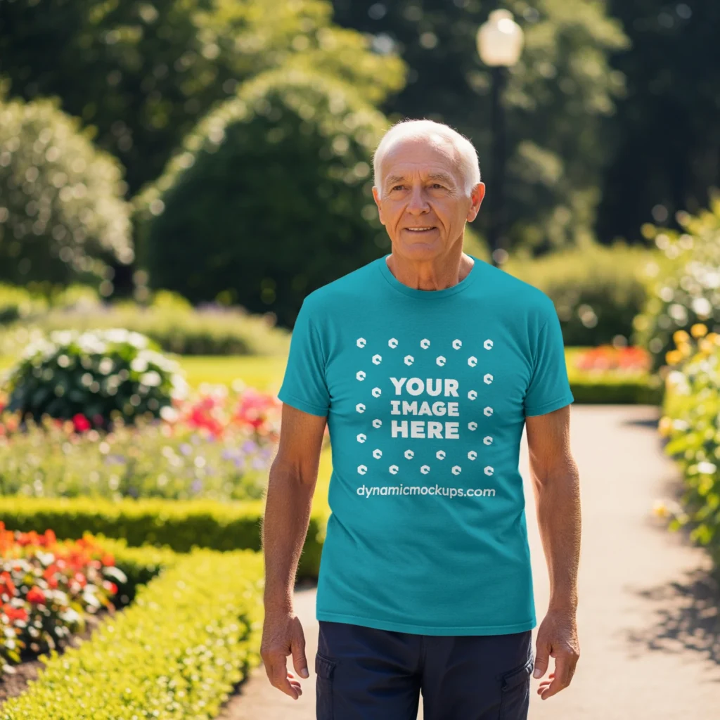 Need an Old White Man wearing a Teal Gildan 5000 T-shirt Mockup Template to make a realistic product design? Look no further! Our T-shirt mockup templates are perfect for bringing your creative ideas to life. These mockups add a stylish touch to any design. Download, edit online, or use Photoshop to personalize and present your T-shirt designs easily. Try Man wearing a Teal Gildan 5000 T-shirt Mockup Template #17621 now!