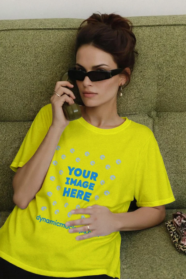 Woman Wearing Yellow T-shirt Mockup Front View Template