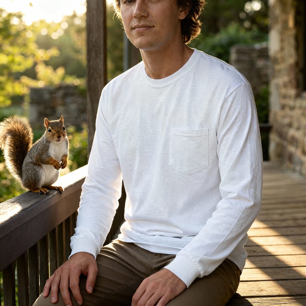 Young Indian Man Wearing Hanes Men’s Authentic Long Sleeve Pocket T-Shirt – 5596 Mockup Template