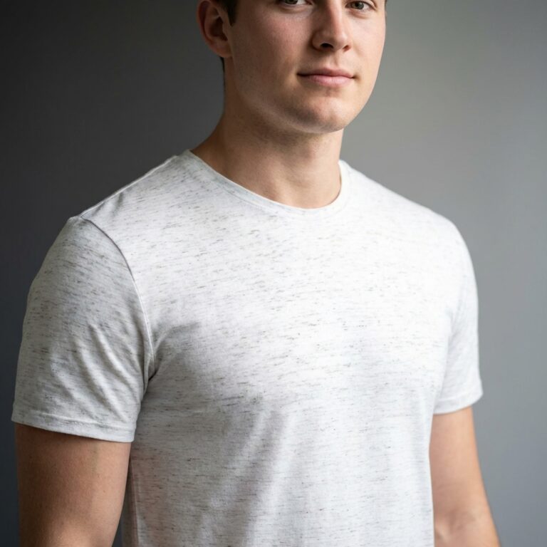 Man Wearing White T-shirt Mockup Front View Template