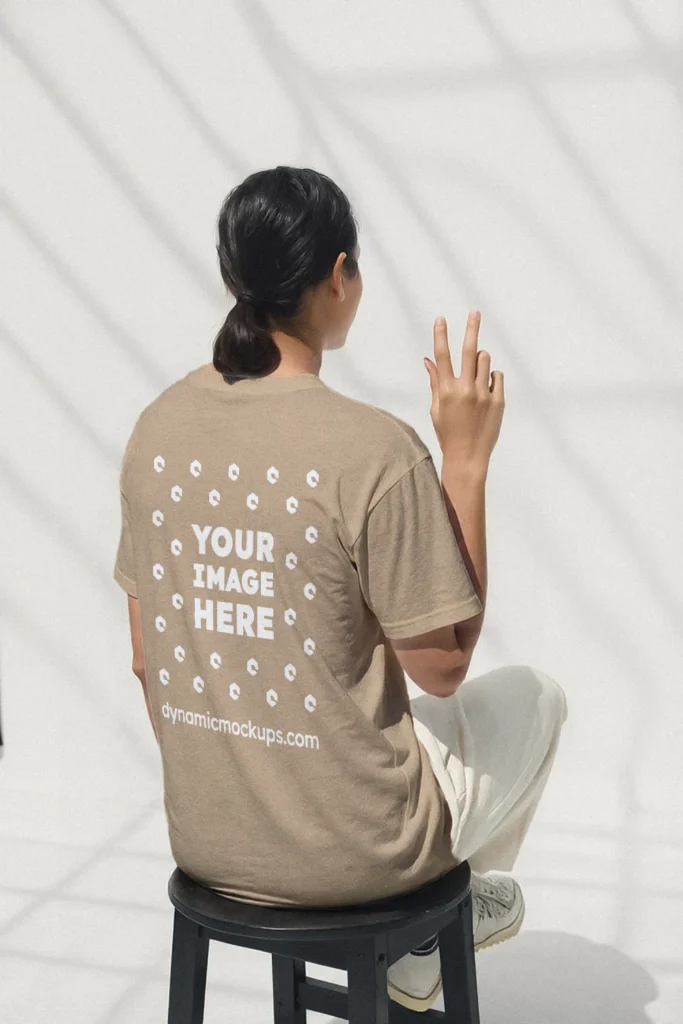 Need an Adult White Woman wearing a Beige Gildan 5000 T-shirt Mockup Template to make a realistic product design? Look no further! Our T-shirt mockup templates are perfect for bringing your creative ideas to life. These mockups add a stylish touch to any design. Download, edit online, or use Photoshop to personalize and present your T-shirt designs easily. Try Woman wearing a Beige Gildan 5000 T-shirt Mockup Template #17605 now!