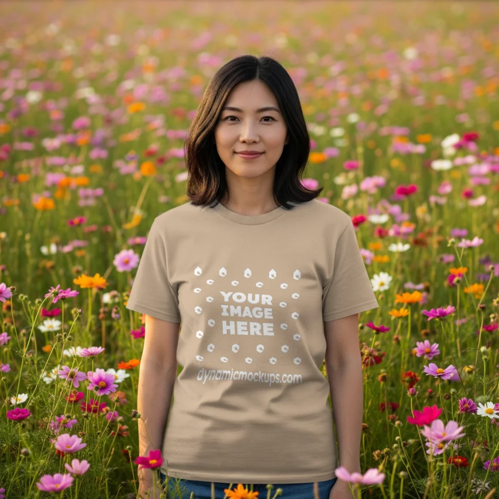 Need an Adult Asian Woman wearing a Beige Gildan 5000 T-shirt Mockup Template to make a realistic product design? Look no further! Our T-shirt mockup templates are perfect for bringing your creative ideas to life. These mockups add a stylish touch to any design. Download, edit online, or use Photoshop to personalize and present your T-shirt designs easily. Try Woman wearing a Beige Gildan 5000 T-shirt Mockup Template #17613 now!