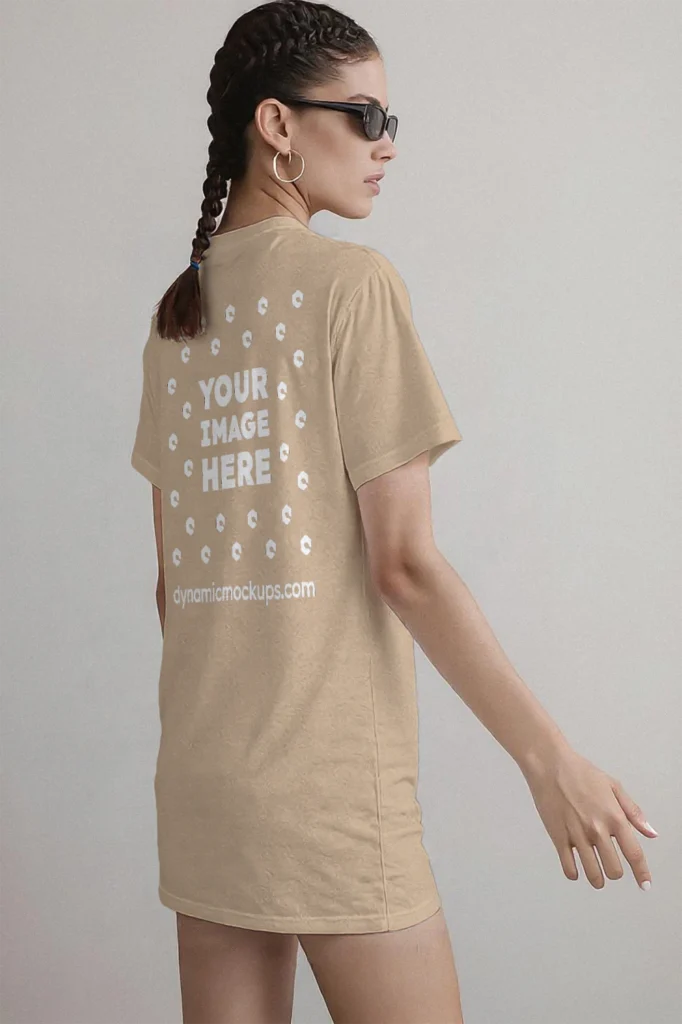 Woman Wearing Beige T-shirt Mockup Front View Template