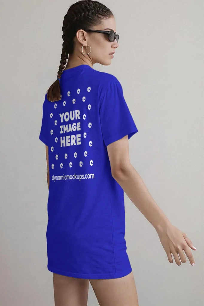 Woman Wearing Blue T-shirt Mockup Front View Template