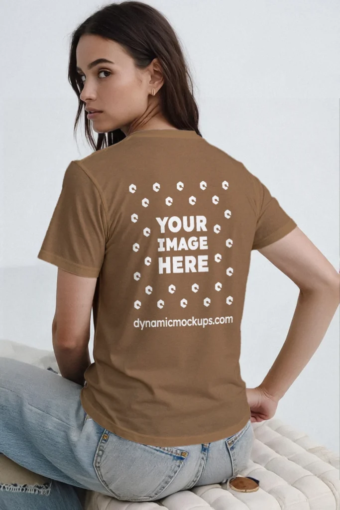 Woman Wearing Brown Gildan 5000 T-shirt Mockup Template