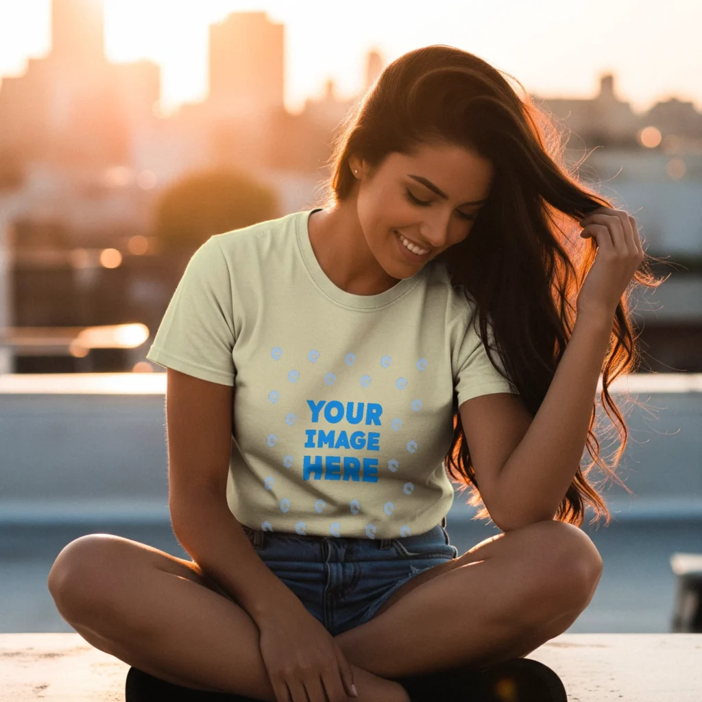 Need an Adult White Woman wearing a Cream Gildan 5000 T-shirt Mockup Template to make a realistic product design? Look no further! Our T-shirt mockup templates are perfect for bringing your creative ideas to life. These mockups add a stylish touch to any design. Download, edit online, or use Photoshop to personalize and present your T-shirt designs easily. Try Woman wearing a Cream Gildan 5000 T-shirt Mockup Template #17625 now!
