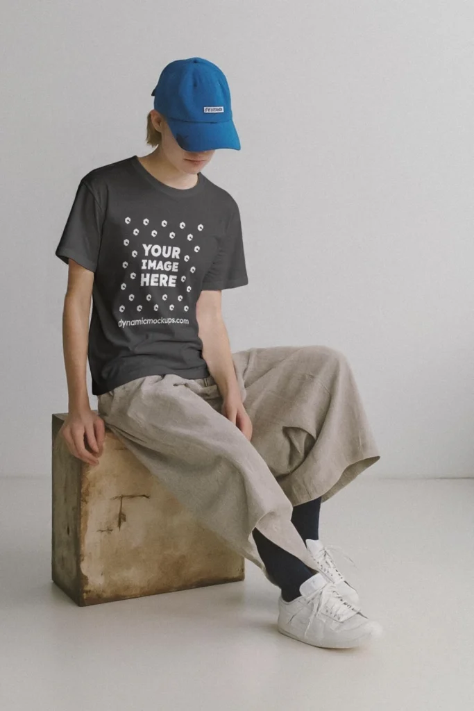 Man Wearing Dark Gray T-shirt Mockup Front View Template