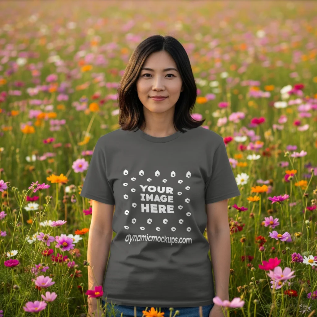 Need an Adult Asian Woman wearing a Dark Gray Gildan 5000 T-shirt Mockup Template to make a realistic product design? Look no further! Our T-shirt mockup templates are perfect for bringing your creative ideas to life. These mockups add a stylish touch to any design. Download, edit online, or use Photoshop to personalize and present your T-shirt designs easily. Try Woman wearing a Dark Gray Gildan 5000 T-shirt Mockup Template #17613 now!