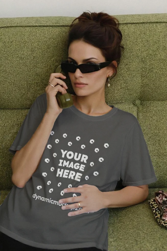 Woman Wearing Dark Gray T-shirt Mockup Front View Template