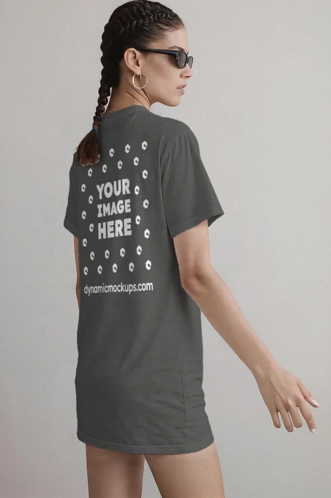 Man Wearing Dark Gray T-shirt Mockup Back View Template
