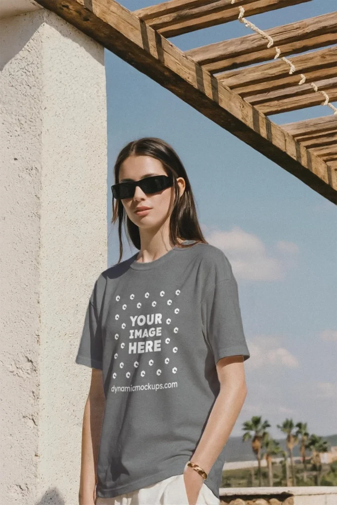Need an Adult White Woman wearing a Gray Gildan 5000 T-shirt Mockup Template to make a realistic product design? Look no further! Our T-shirt mockup templates are perfect for bringing your creative ideas to life. These mockups add a stylish touch to any design. Download, edit online, or use Photoshop to personalize and present your T-shirt designs easily. Try Woman wearing a Gray Gildan 5000 T-shirt Mockup Template #17608 now!