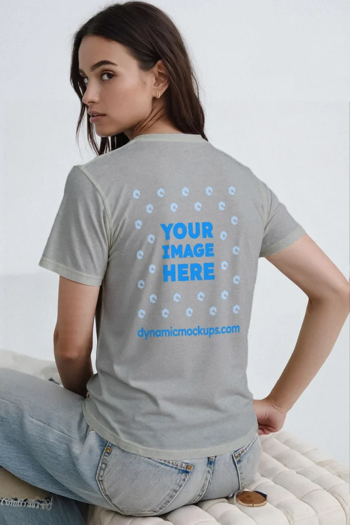 Woman Wearing Light Gray T-shirt Mockup Front View Template