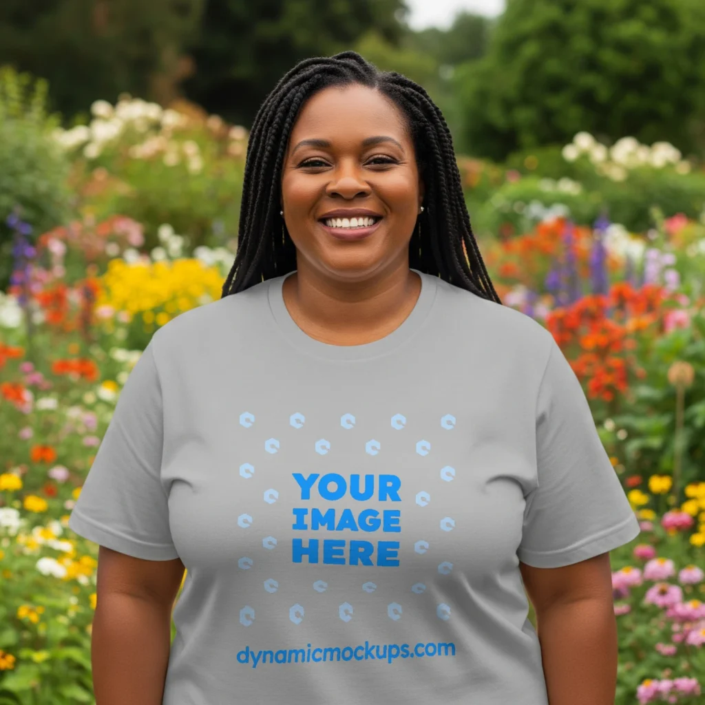Need an Adult Black Woman wearing a Light Gray Gildan 5000 T-shirt Mockup Template to make a realistic product design? Look no further! Our T-shirt mockup templates are perfect for bringing your creative ideas to life. These mockups add a stylish touch to any design. Download, edit online, or use Photoshop to personalize and present your T-shirt designs easily. Try Woman wearing a Light Gray Gildan 5000 T-shirt Mockup Template #17615 now!