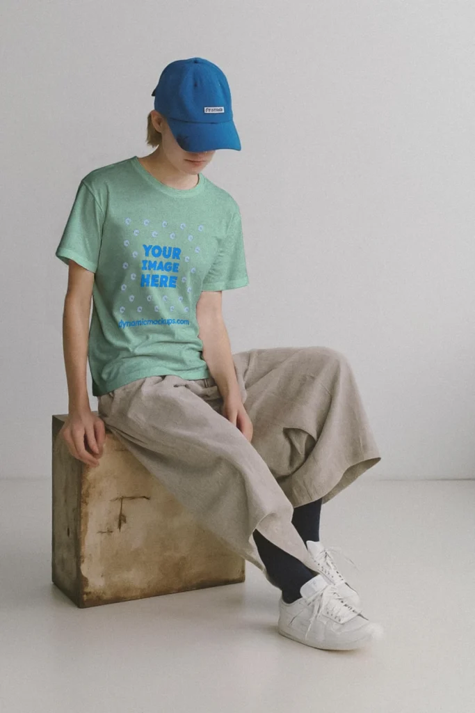 Need an Adult White Woman wearing a Mint Gildan 5000 T-shirt Mockup Template to make a realistic product design? Look no further! Our T-shirt mockup templates are perfect for bringing your creative ideas to life. These mockups add a stylish touch to any design. Download, edit online, or use Photoshop to personalize and present your T-shirt designs easily. Try Woman wearing a Mint Gildan 5000 T-shirt Mockup Template #17607 now!