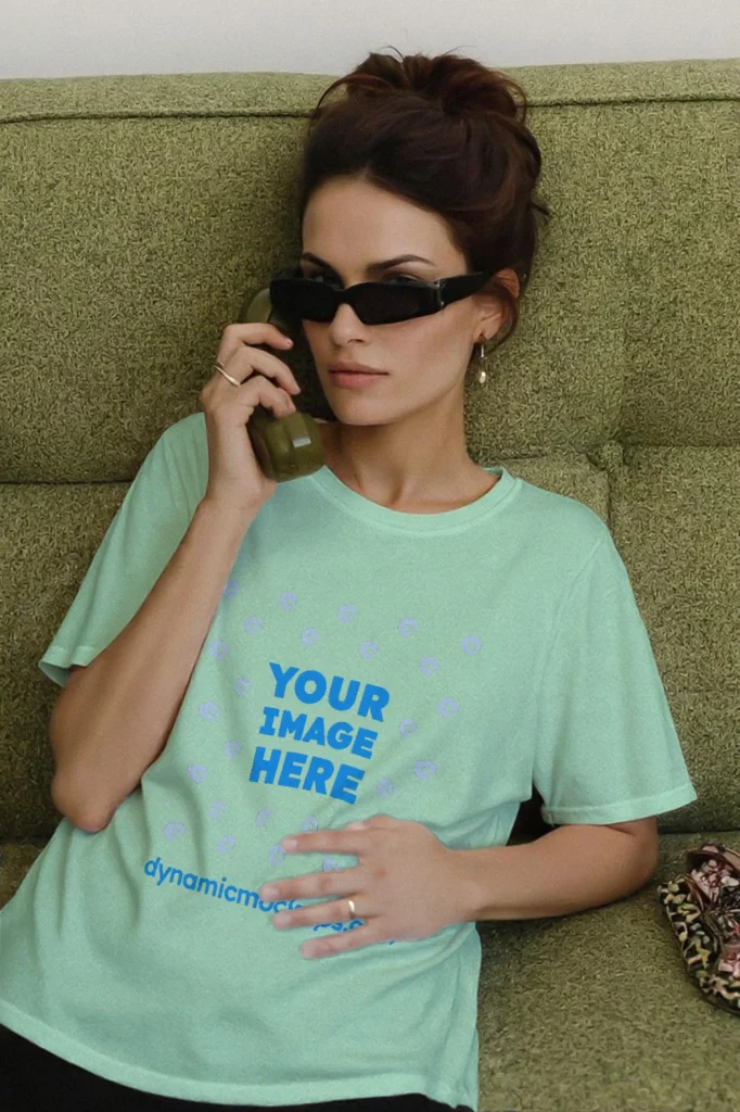 Need an Adult White Woman wearing a Mint Bella Canvas 3001 T-shirt Mockup Template to make a realistic product design? Look no further! Our T-shirt mockup templates are perfect for bringing your creative ideas to life. These mockups add a stylish touch to any design. Download, edit online, or use Photoshop to personalize and present your T-shirt designs easily. Try Woman wearing a Mint Bella Canvas 3001 T-shirt Mockup Template #19253 now!
