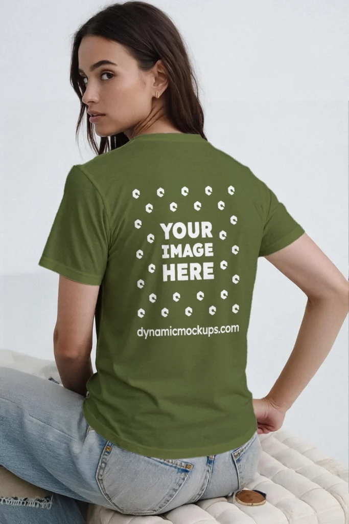 Woman Wearing Olive Green T-shirt Mockup Front View Template
