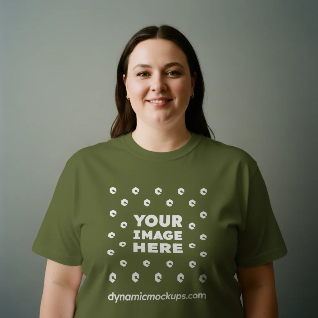 Woman Wearing Olive Green T-shirt Mockup Front View Template