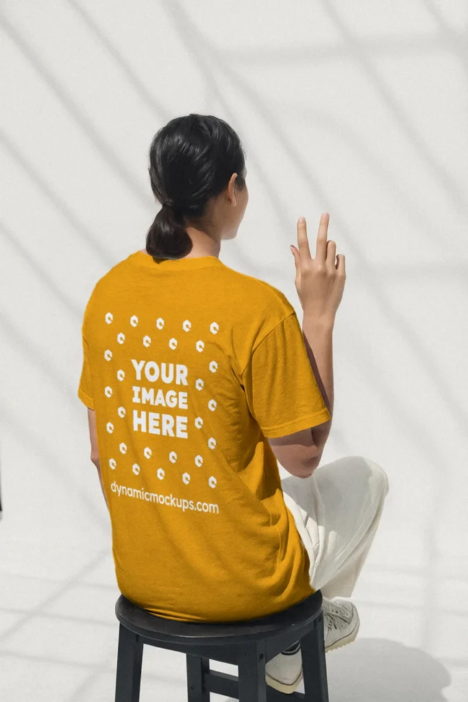 Woman Wearing Orange Gildan 5000 T-shirt Mockup Template