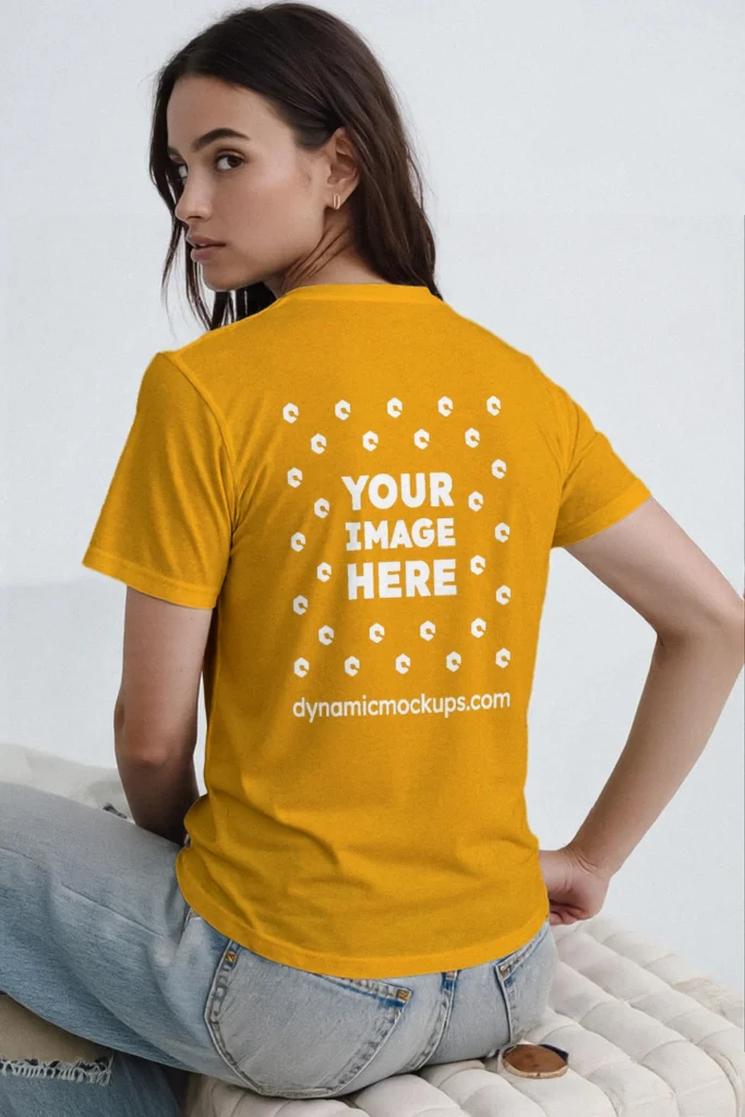 Woman Wearing Orange T-shirt Mockup Front View Template