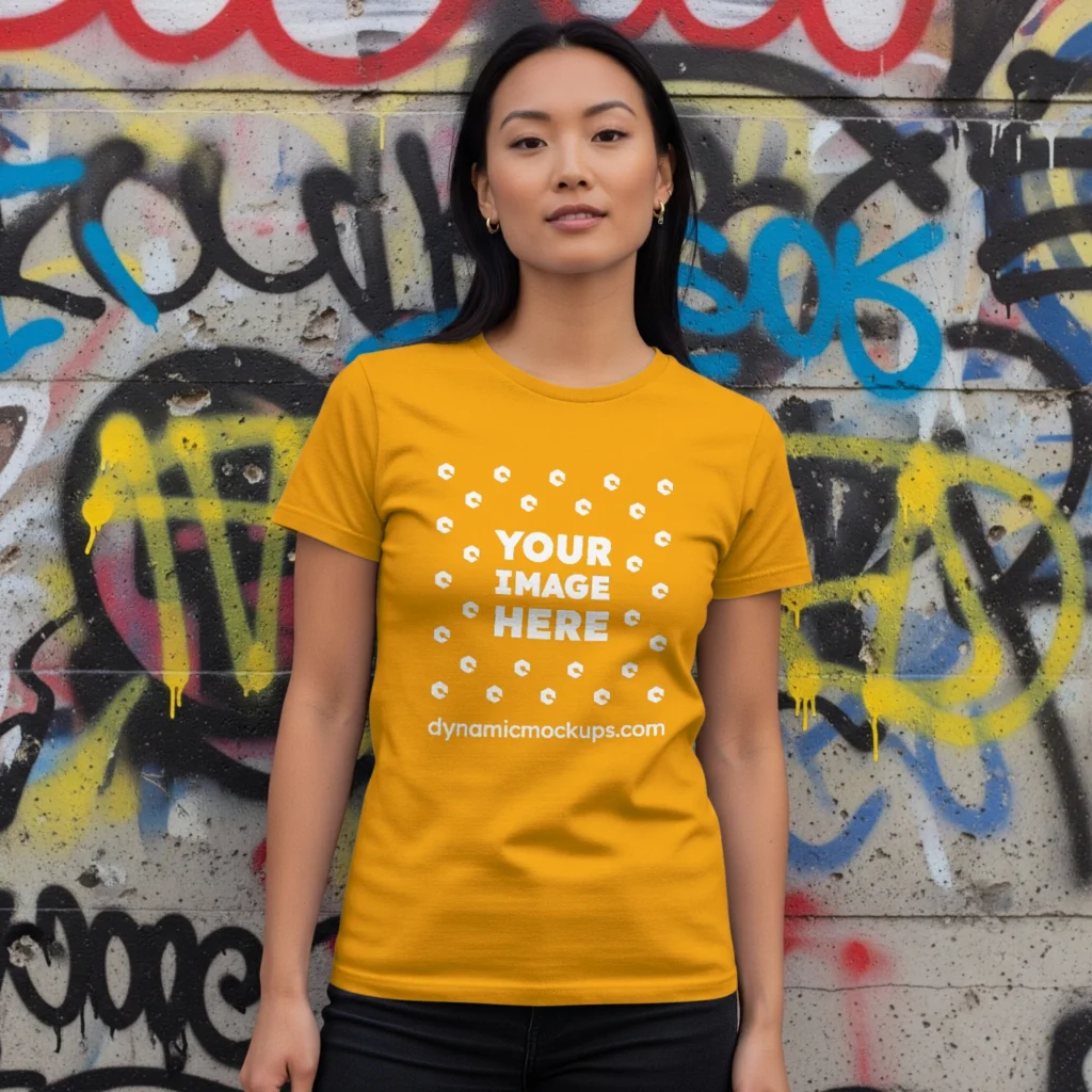 Need an Adult Asian Woman wearing a Orange Gildan 5000 T-shirt Mockup Template to make a realistic product design? Look no further! Our T-shirt mockup templates are perfect for bringing your creative ideas to life. These mockups add a stylish touch to any design. Download, edit online, or use Photoshop to personalize and present your T-shirt designs easily. Try Woman wearing a Orange Gildan 5000 T-shirt Mockup Template #17624 now!