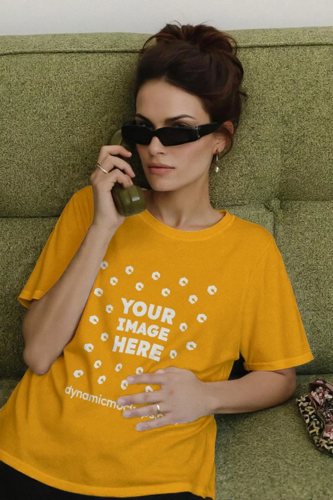 Woman Wearing Orange T-shirt Mockup Front View Template